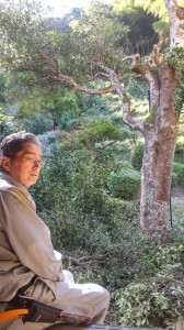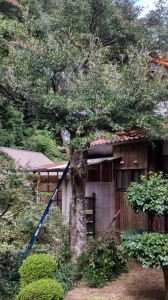 お話終えて控室にて色々話しているうちに、枝が広がり過ぎて屋根傷める等気がかりではあるものの私にはとても登れない裏庭のシンボル《木斛》を急遽 大散髪して頂くことに!