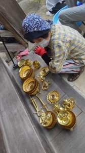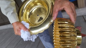 黄色く光ったいた真鍮がお磨きされて白く輝きだしました。